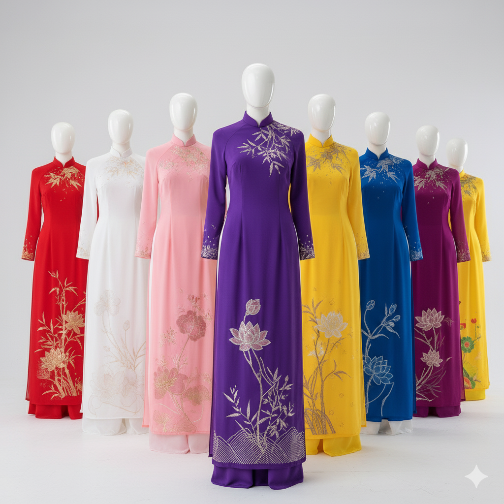 아오자이는 다양한 색상이 있고, 각 색마다 의미가 있어요 🎨