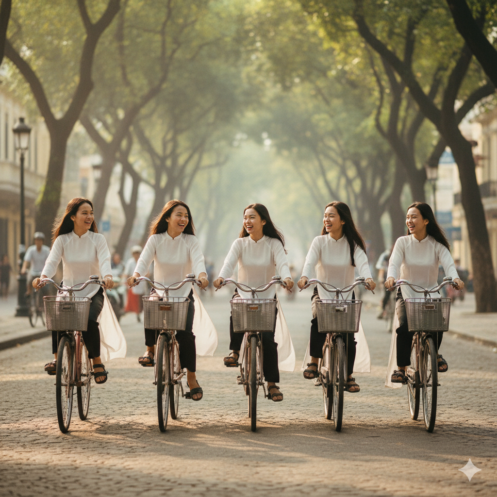 여학생들이 가장 많이 입어요! 많은 고등학교에서 아오자이를 교복으로 지정하거든요. 주로 흰색 아오자이에 검은색 바지를 입어요. 베트남의 여고생들이 아오자이를 입고 자전거를 타고 등교하는 모습... 정말 아름다운 풍경이에요 📚